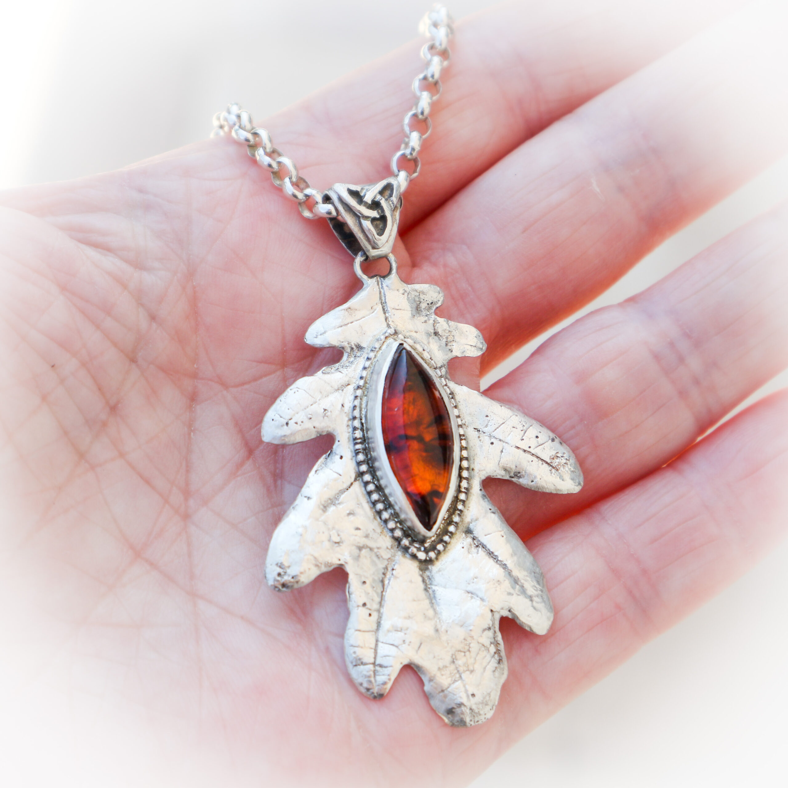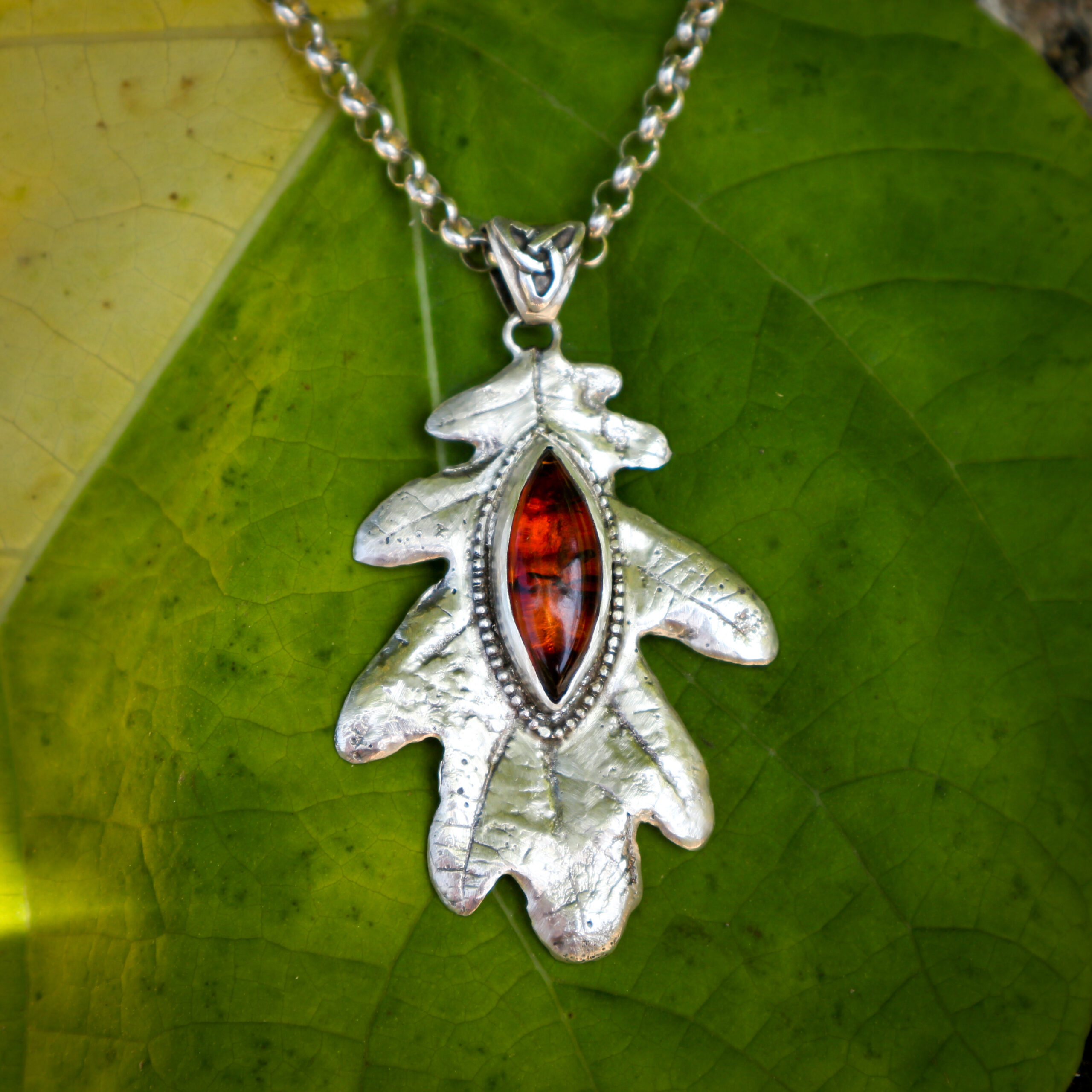 Deze prachtige handgemaakte zilveren hanger is een uniek sieraad, gemaakt van een echt eikenblad .