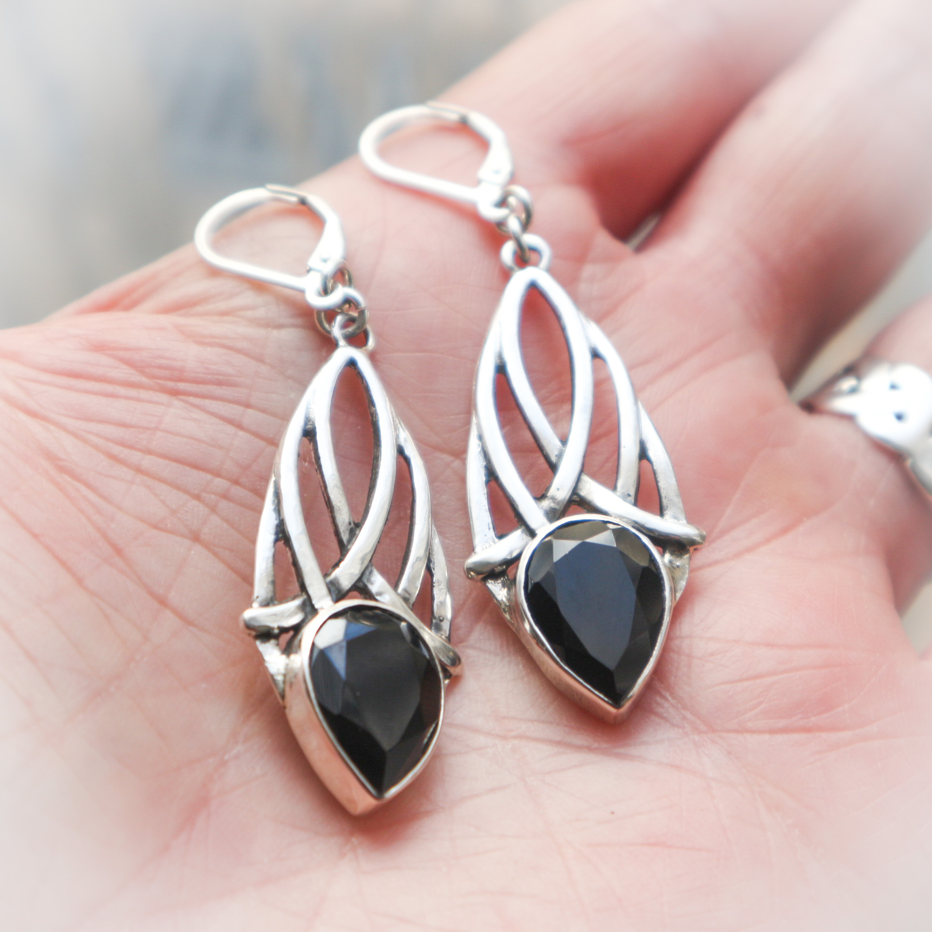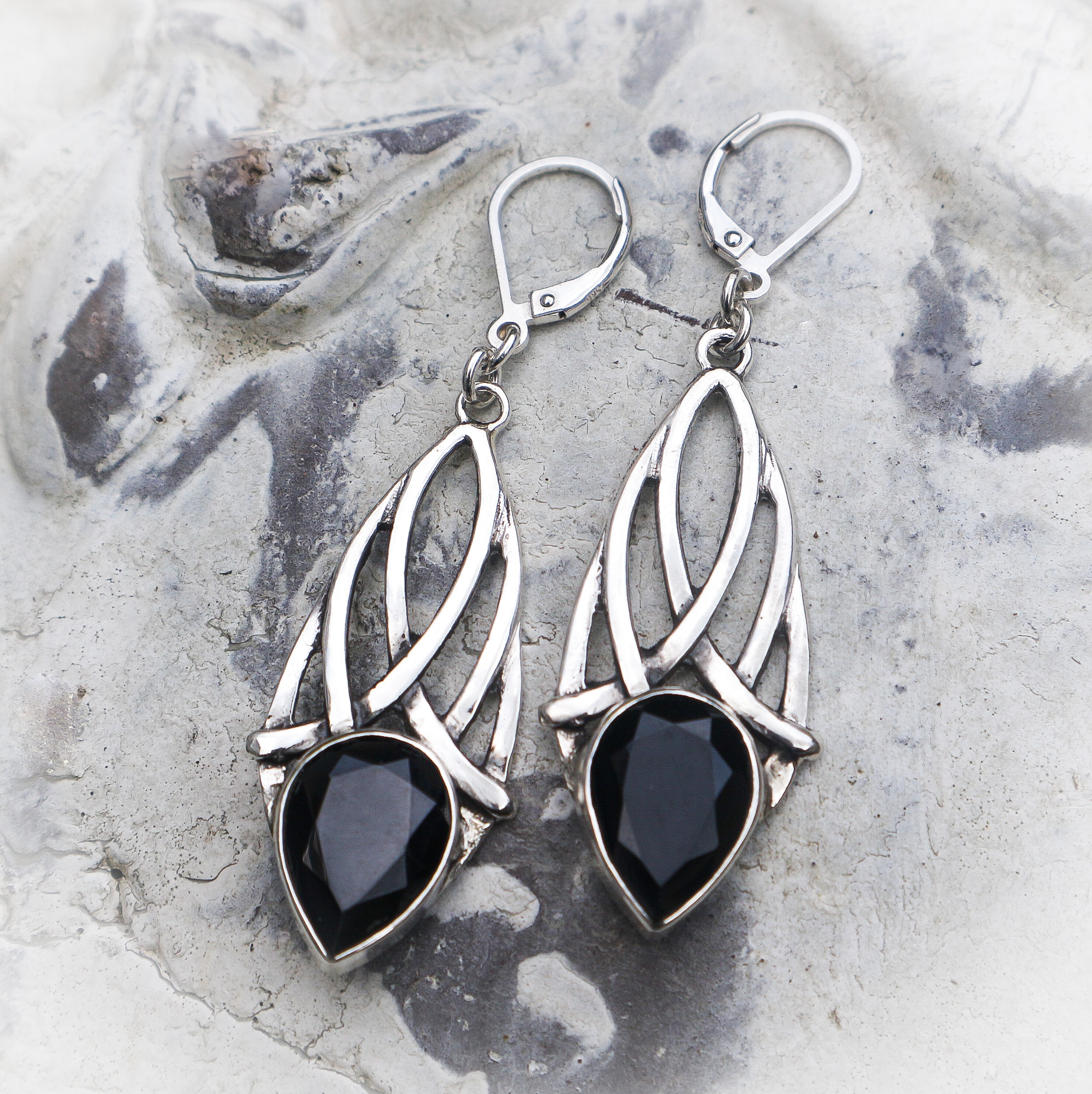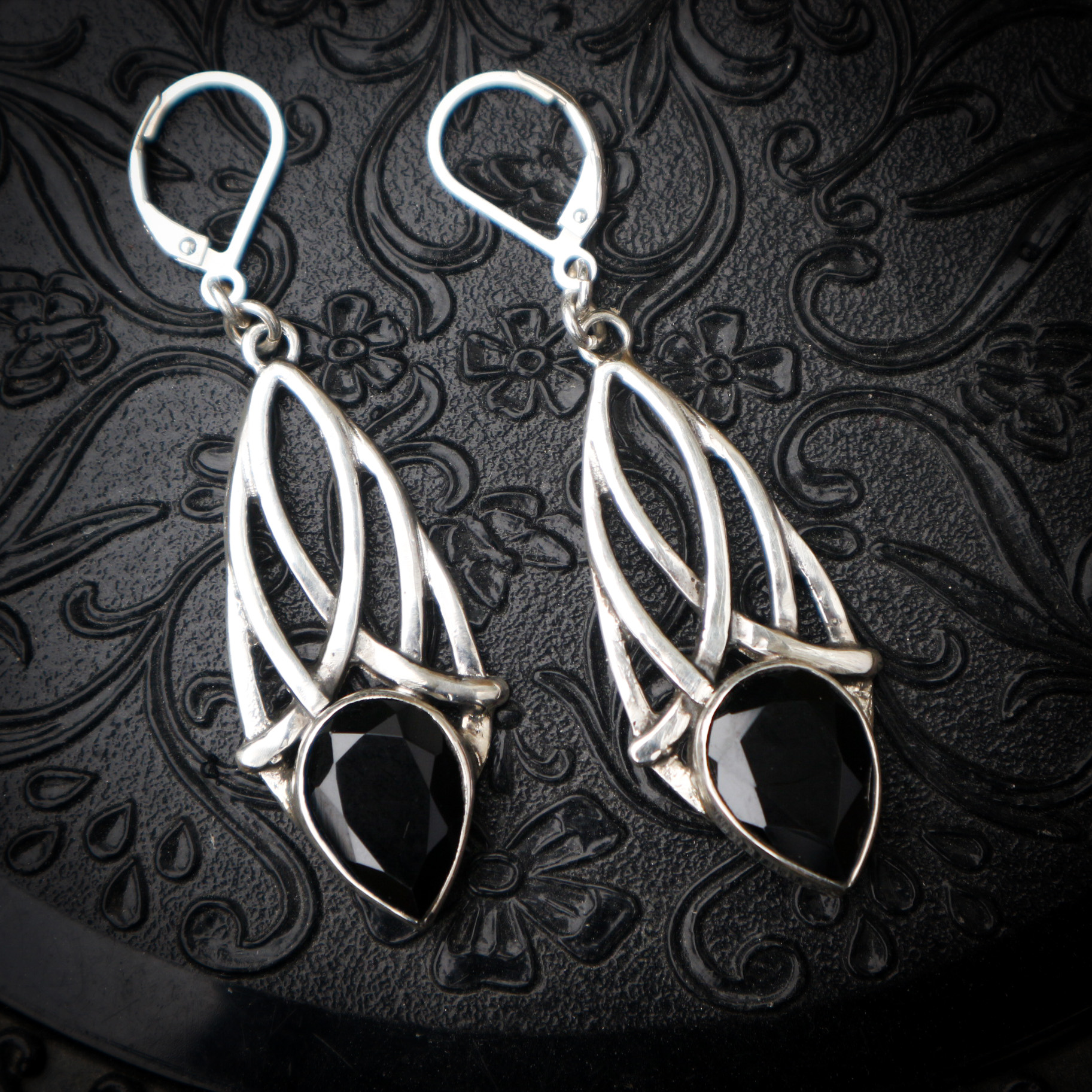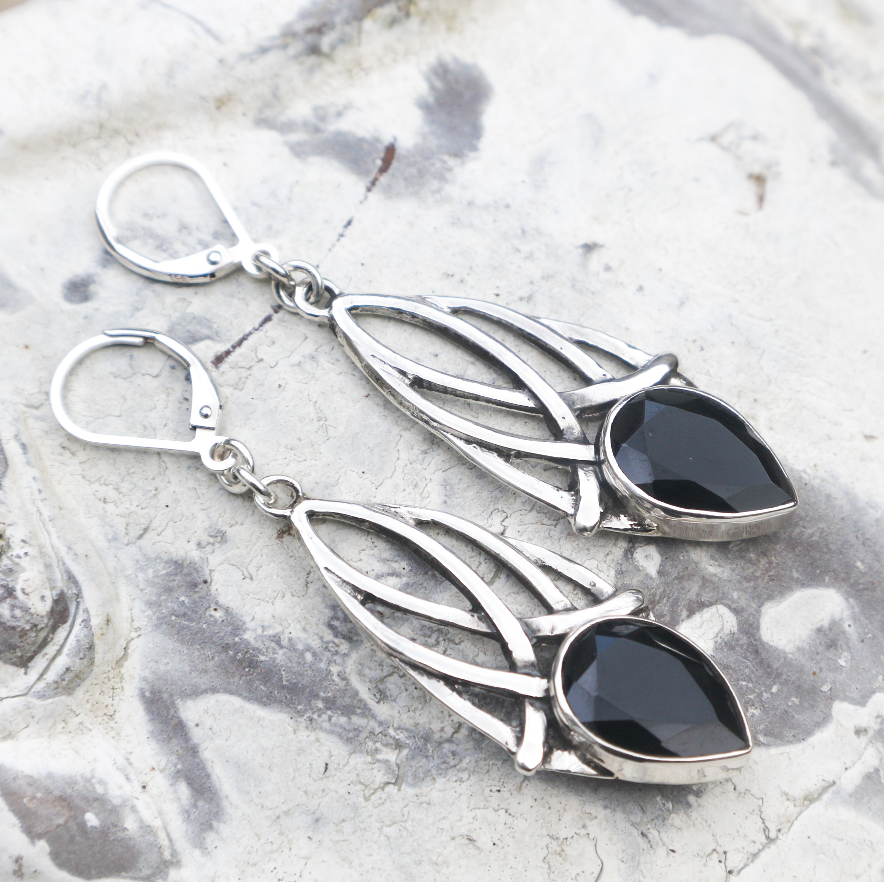 De oorbellen hebben een Art Deco achtige uitstraling met een gevlochten patroon .