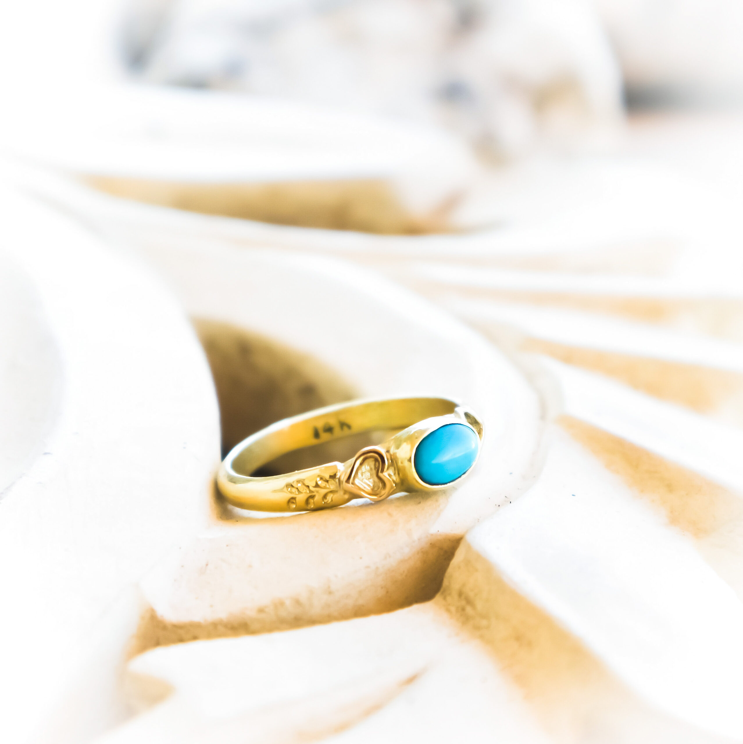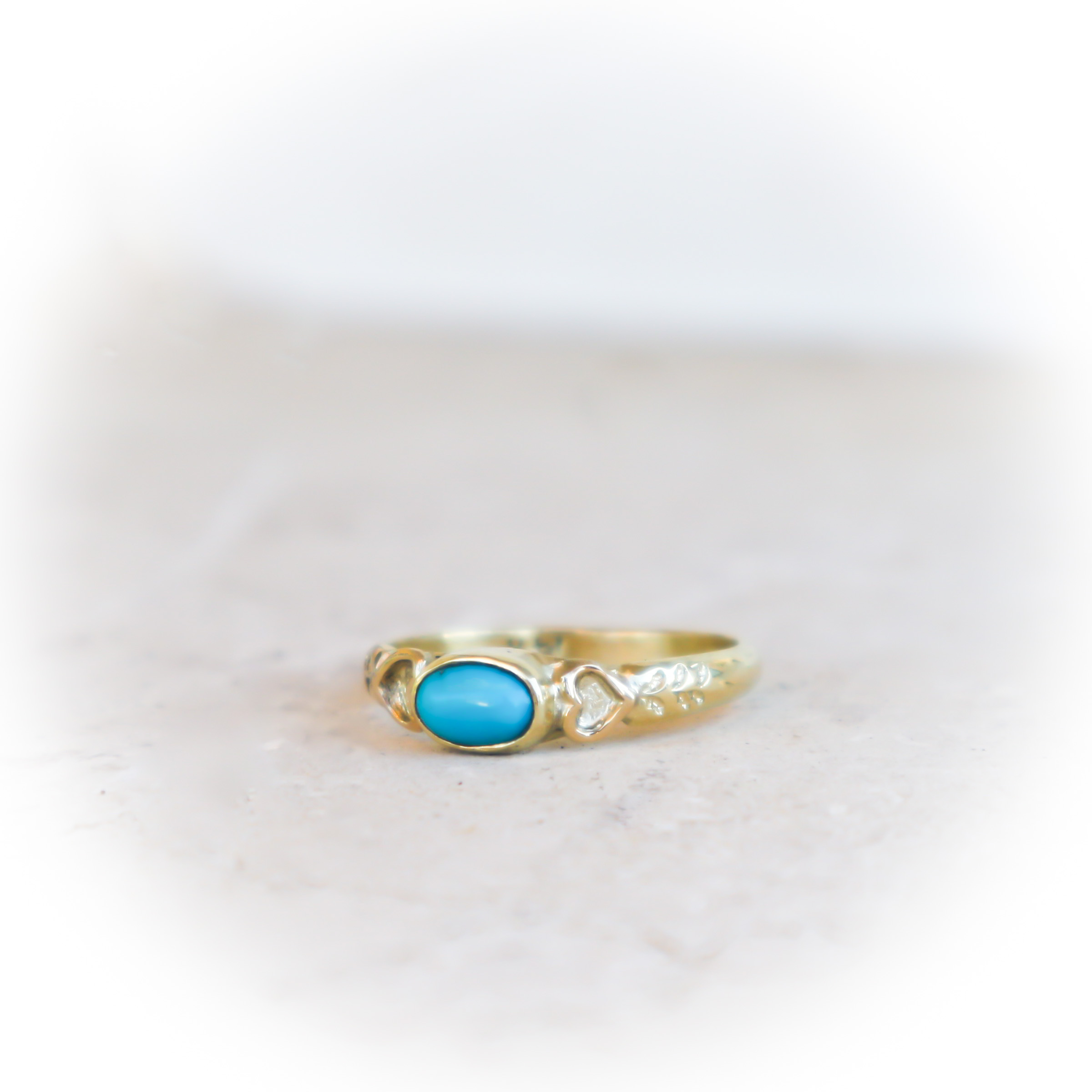 In het midden van de ring een mooi turquoise steentje ( 4×6 mm )