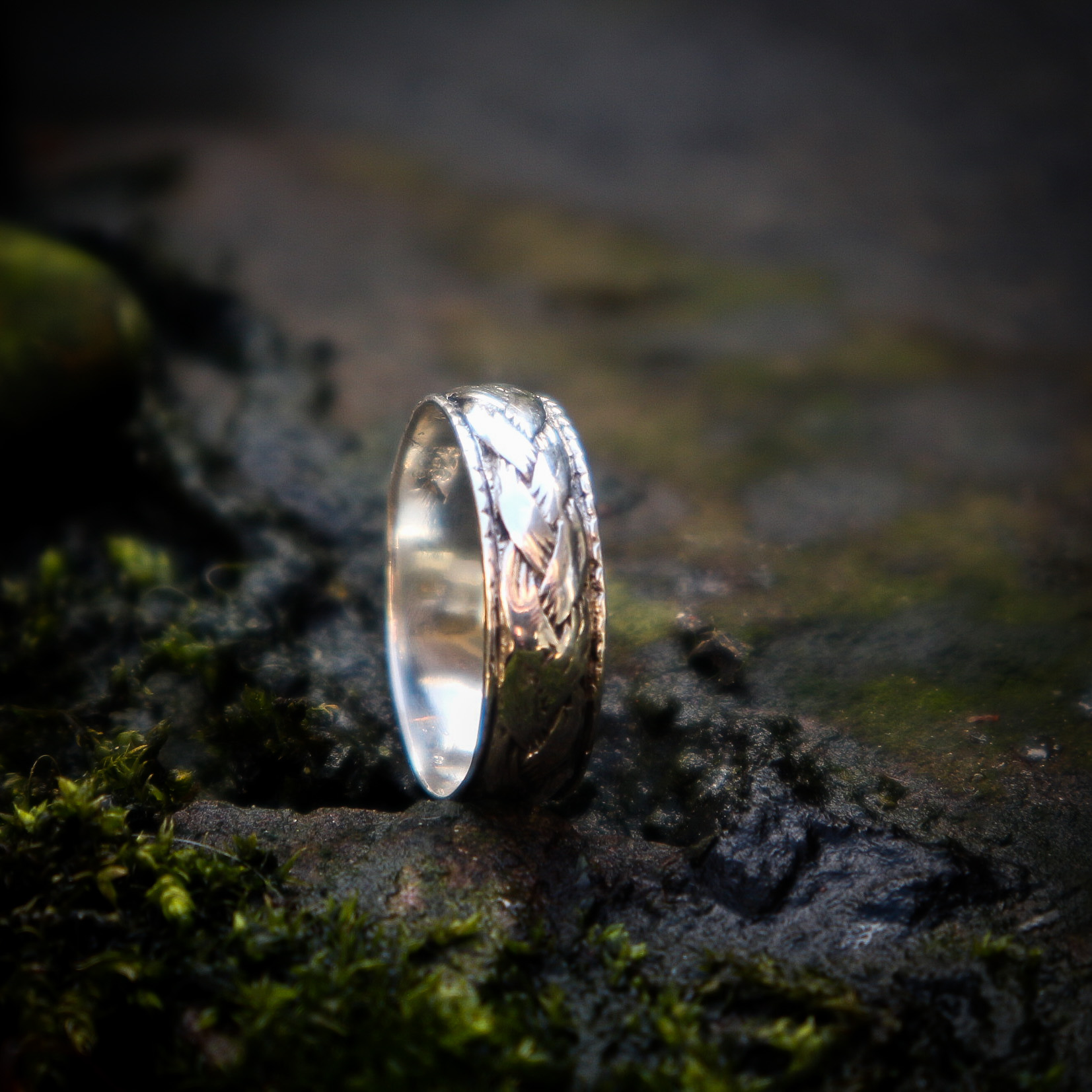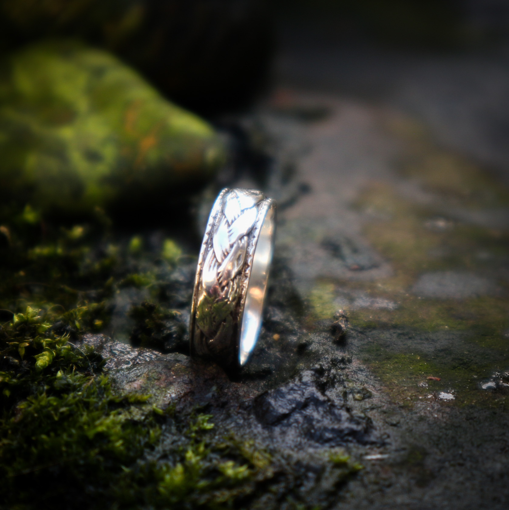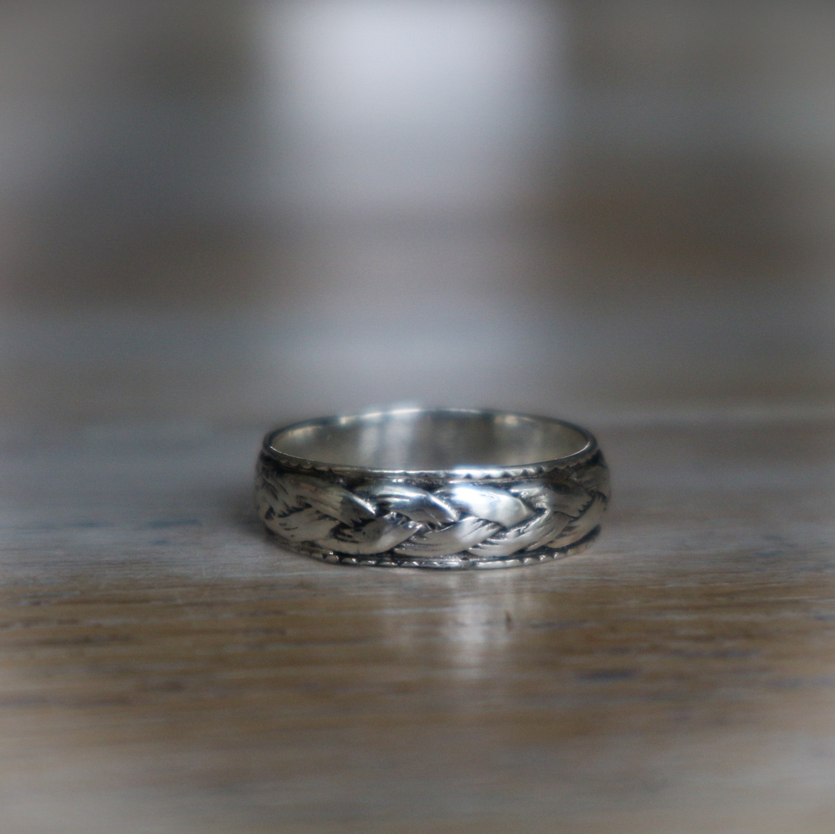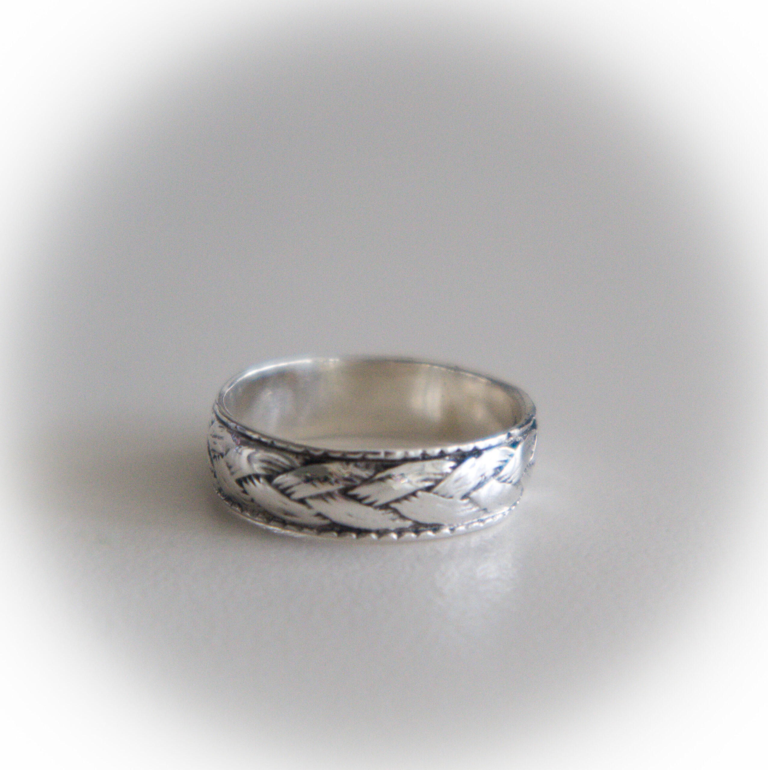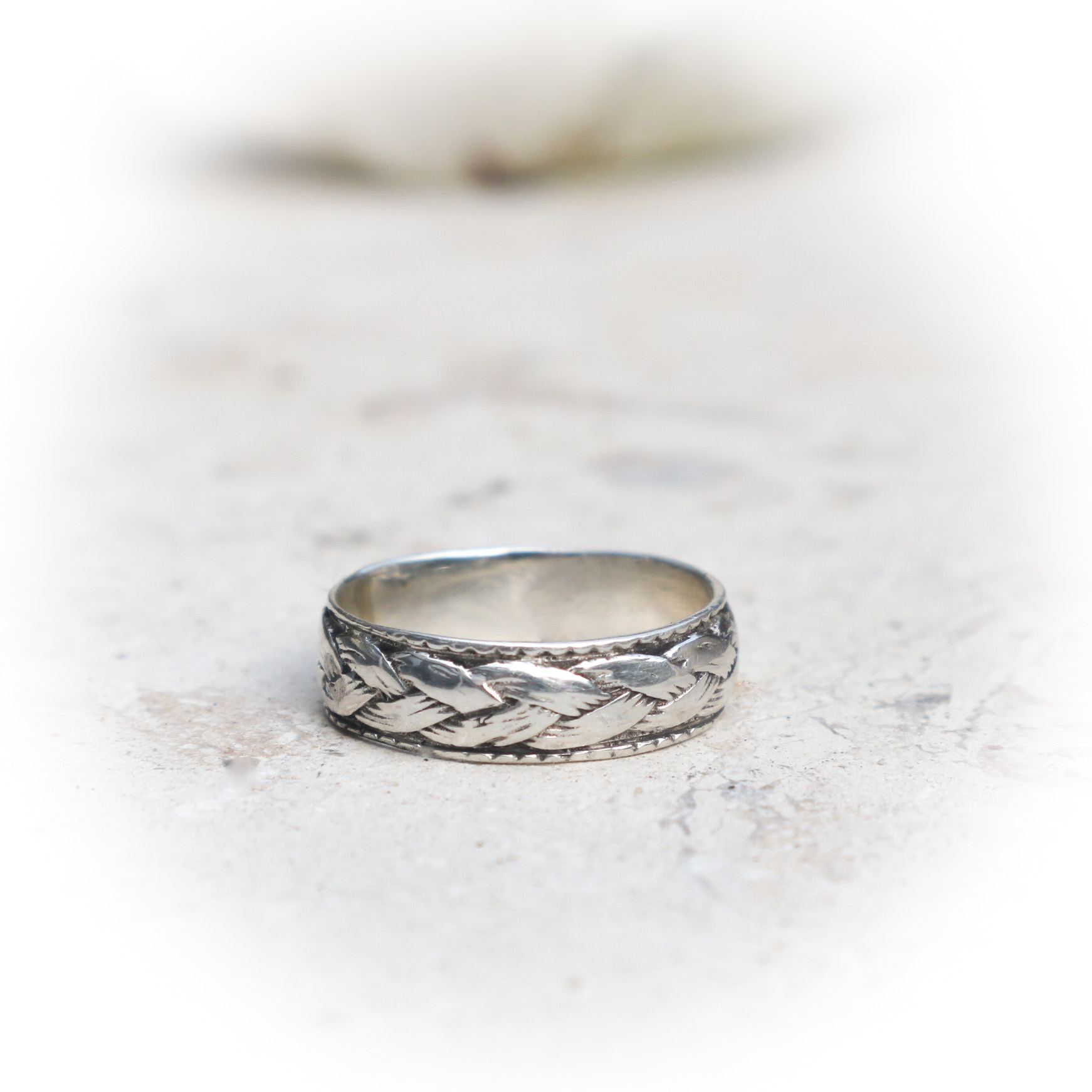 Een sterling zilveren ring met een gevlochten/ vikingstyle motief .