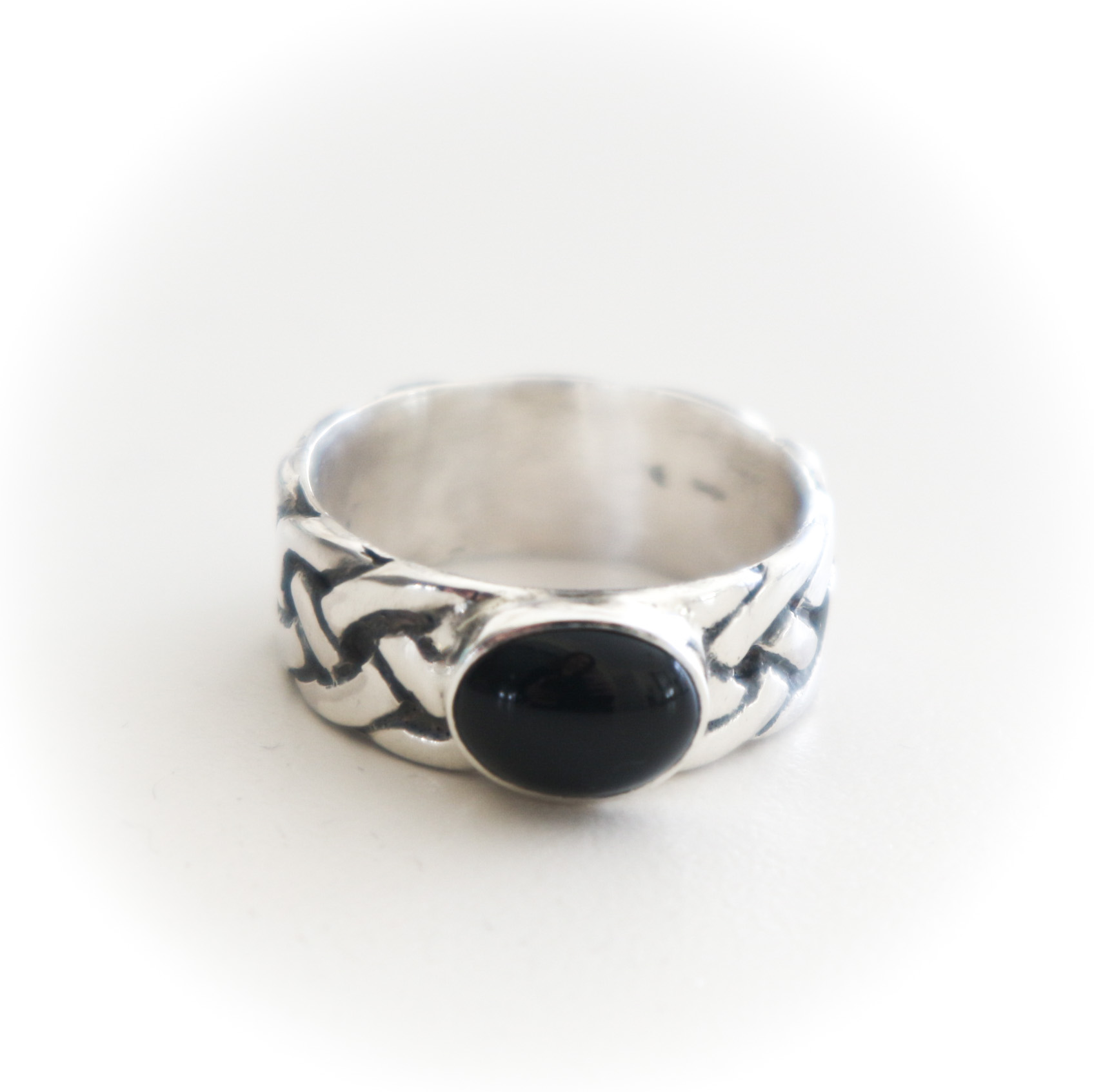 Grote keltische herenring met onyx