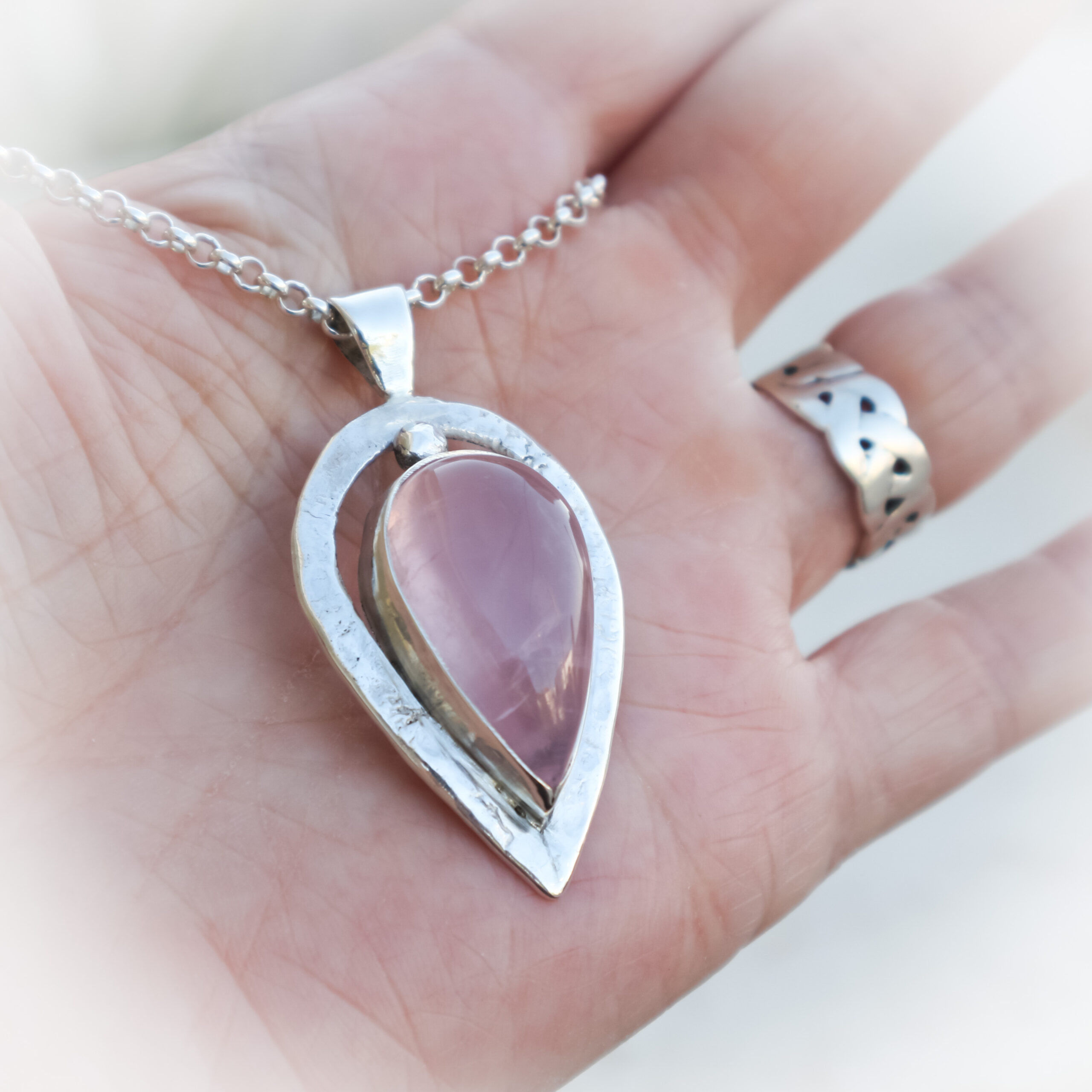 Een werkelijk prachtige, grote rozekwarts steen in een sterling zilveren zetting .