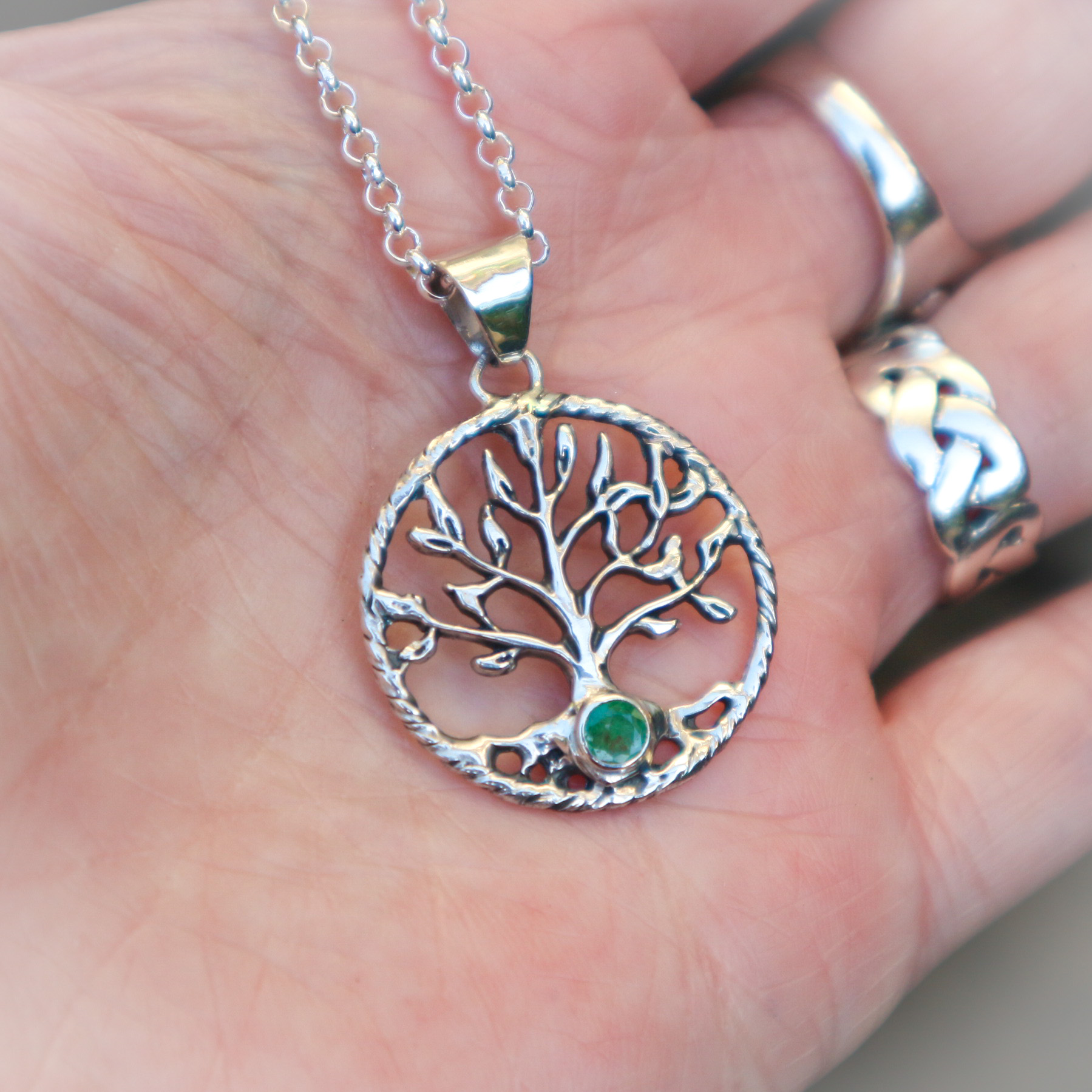 Een hanger gemaakt van sterling /925 zilver, met in het midden een groene smaragd .
