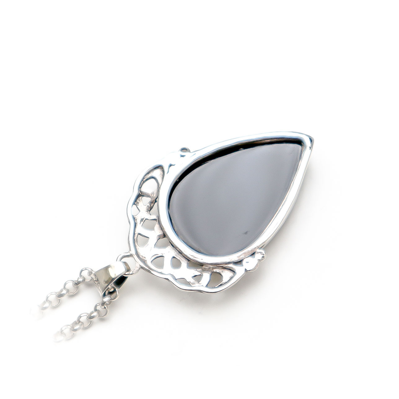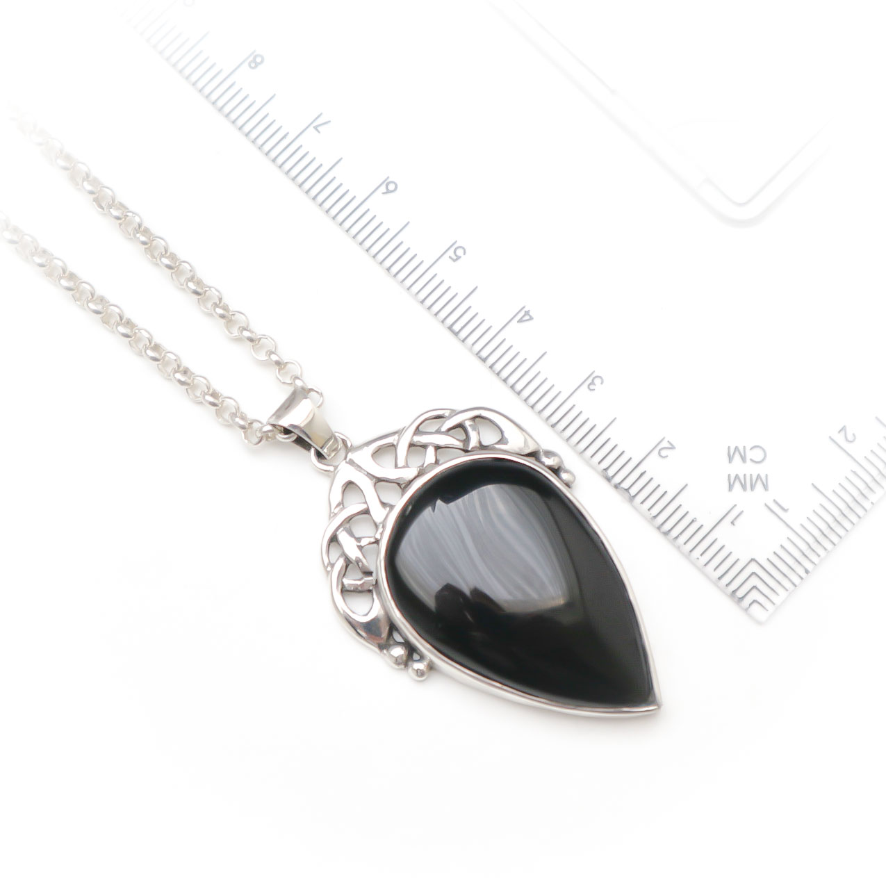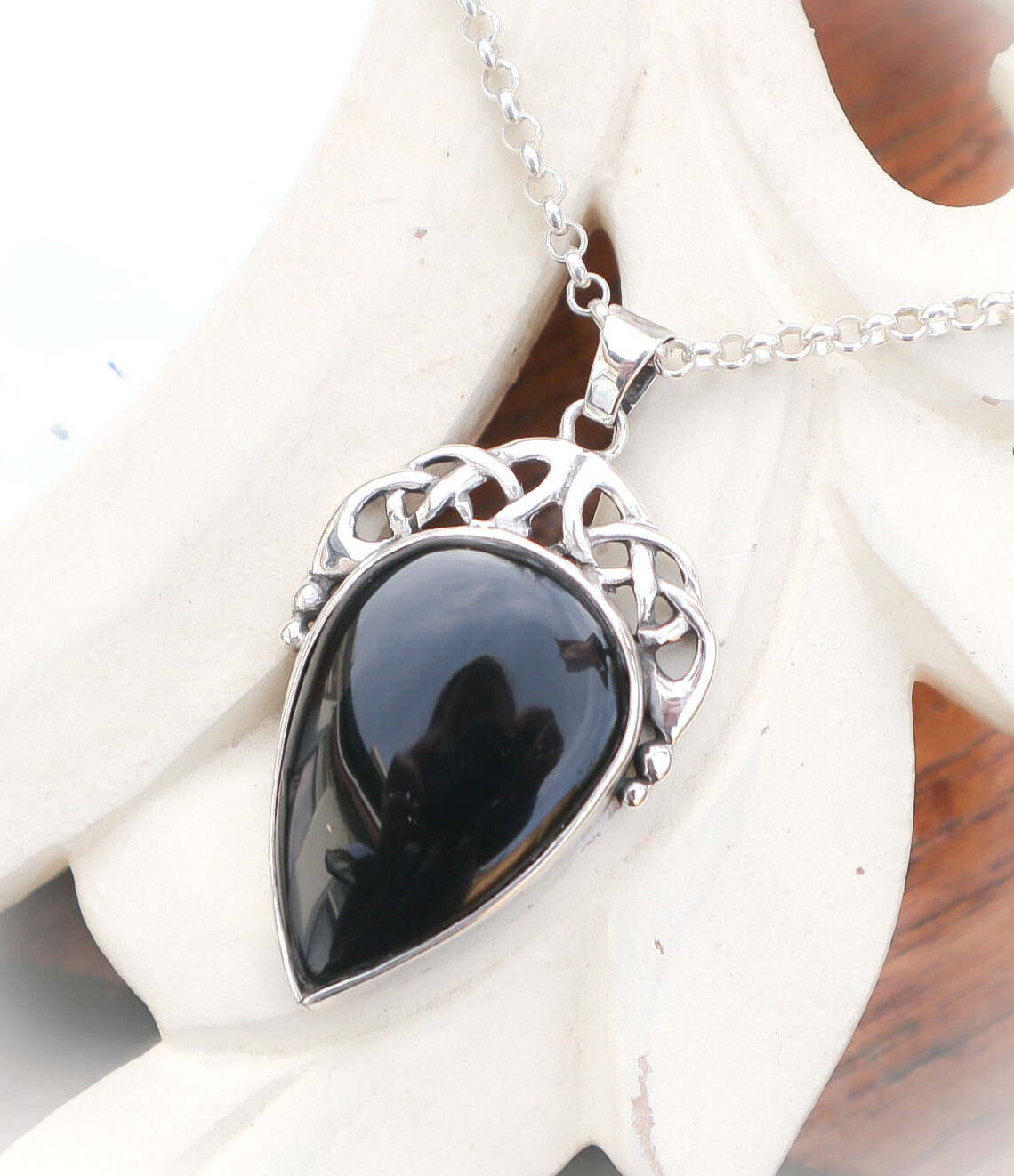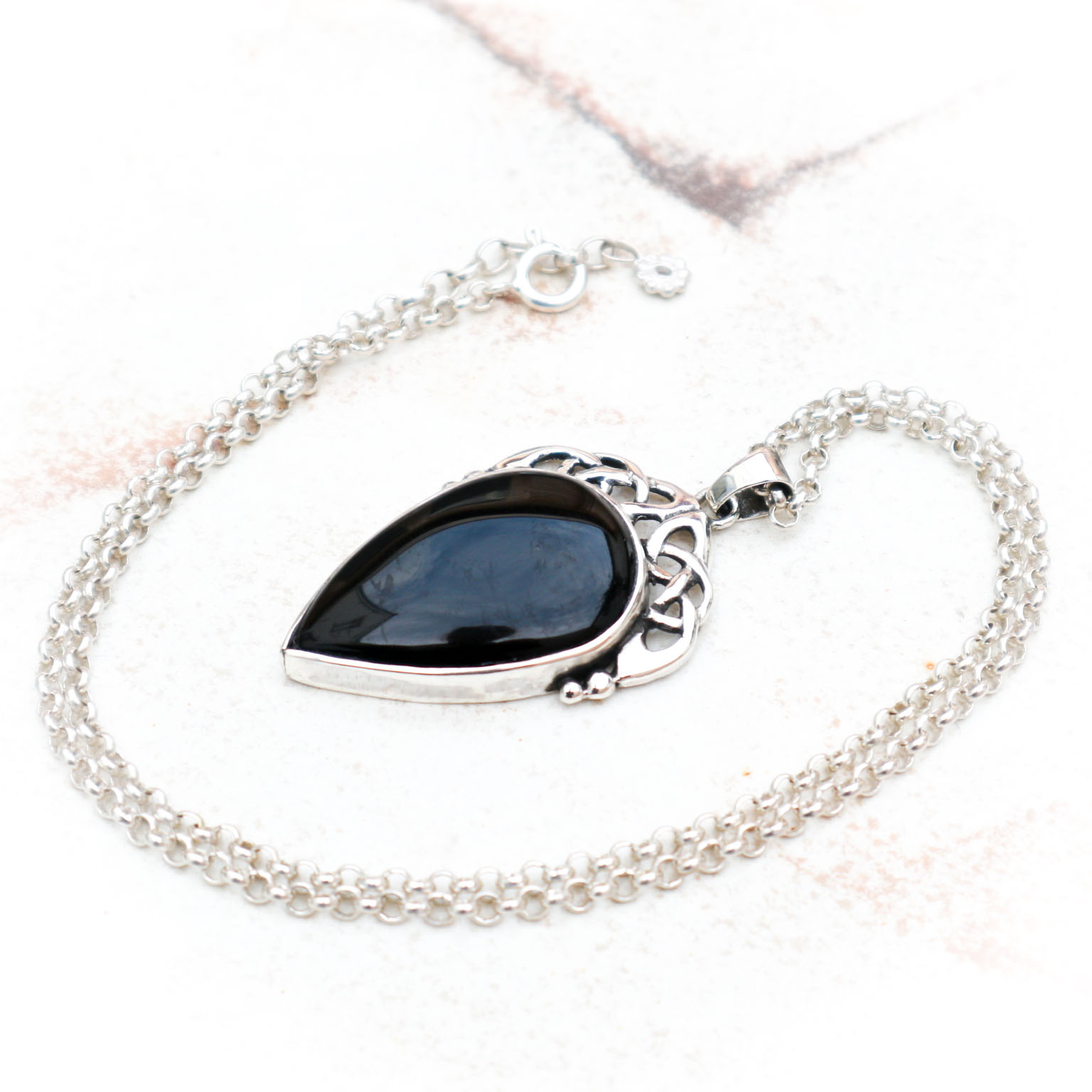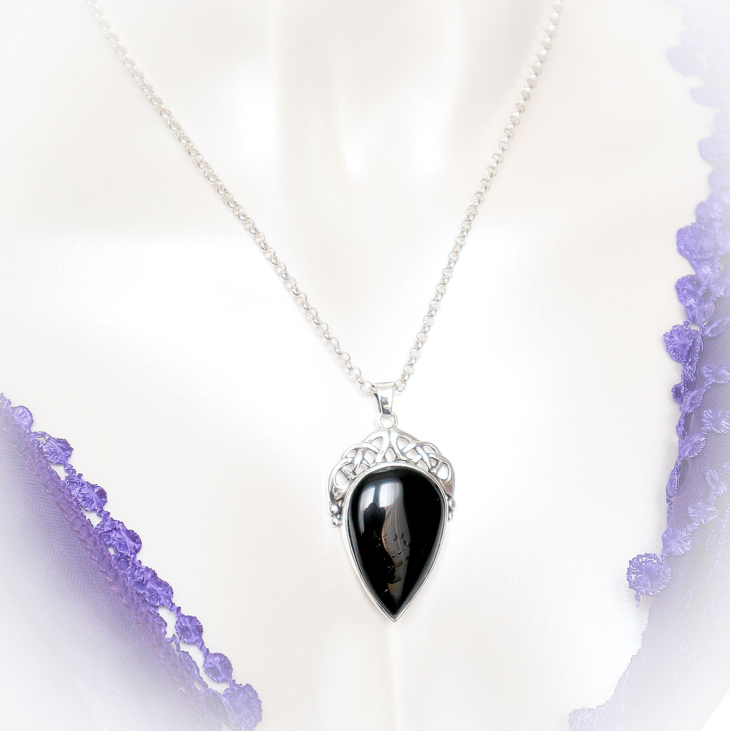 Een prachtige grote, glanzende onyx steen in druppelvorm.