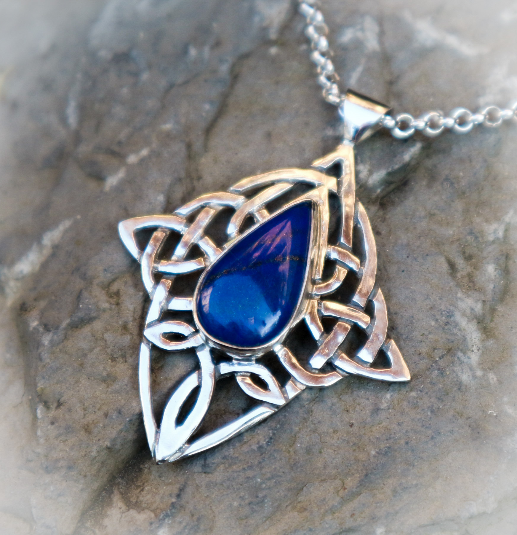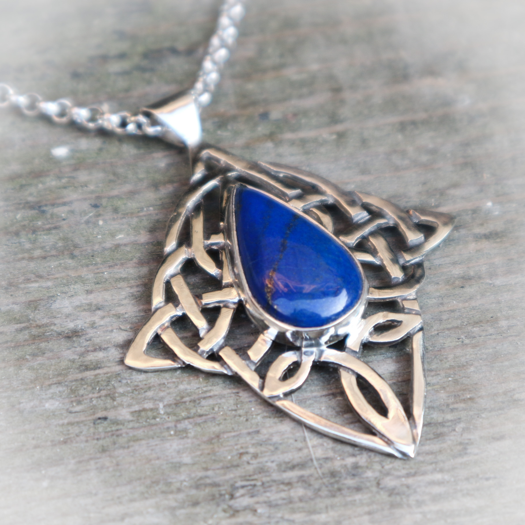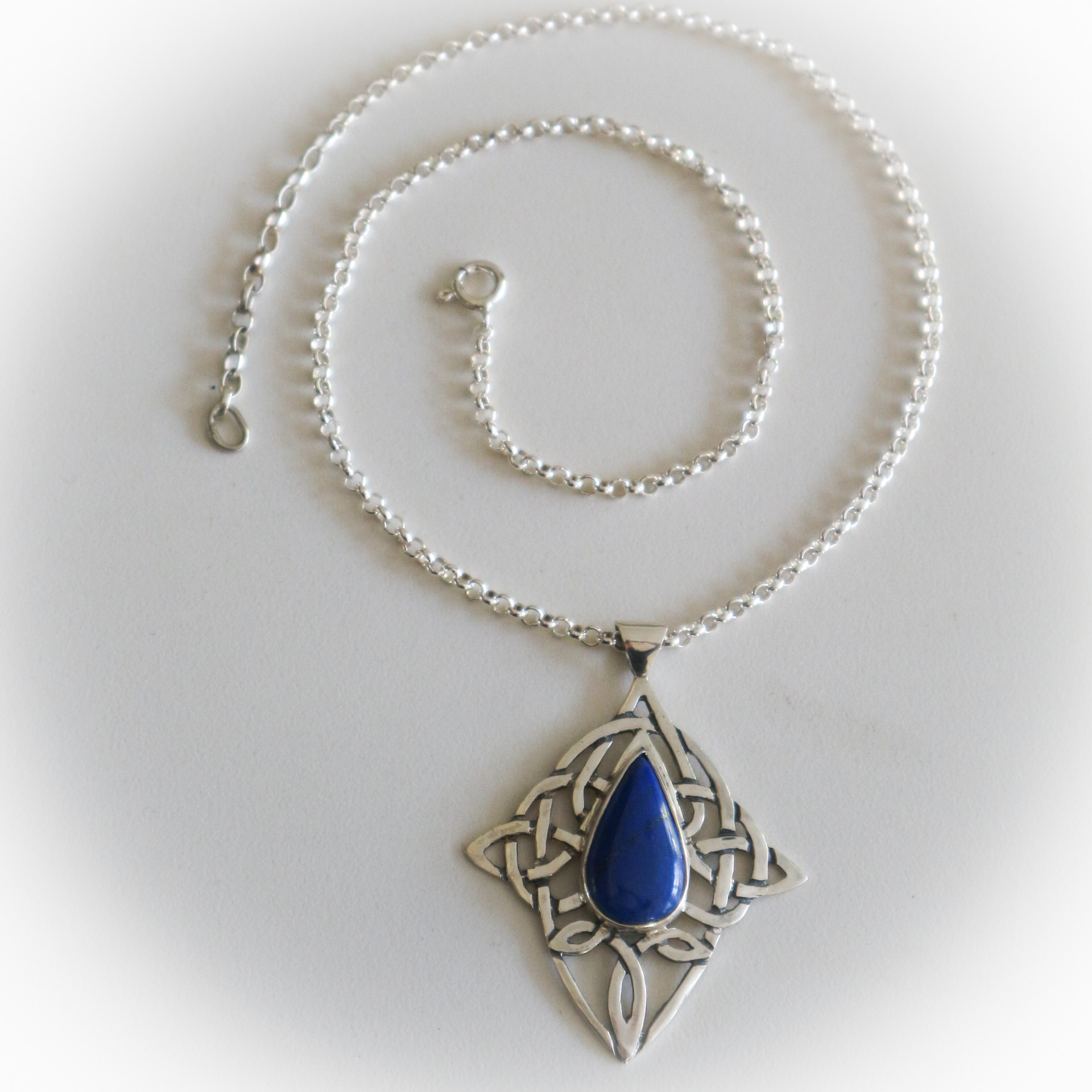 In het midden van de hanger een prachtig blauwe Lapis Lazuli steen, formaat 12×21 millimeter .