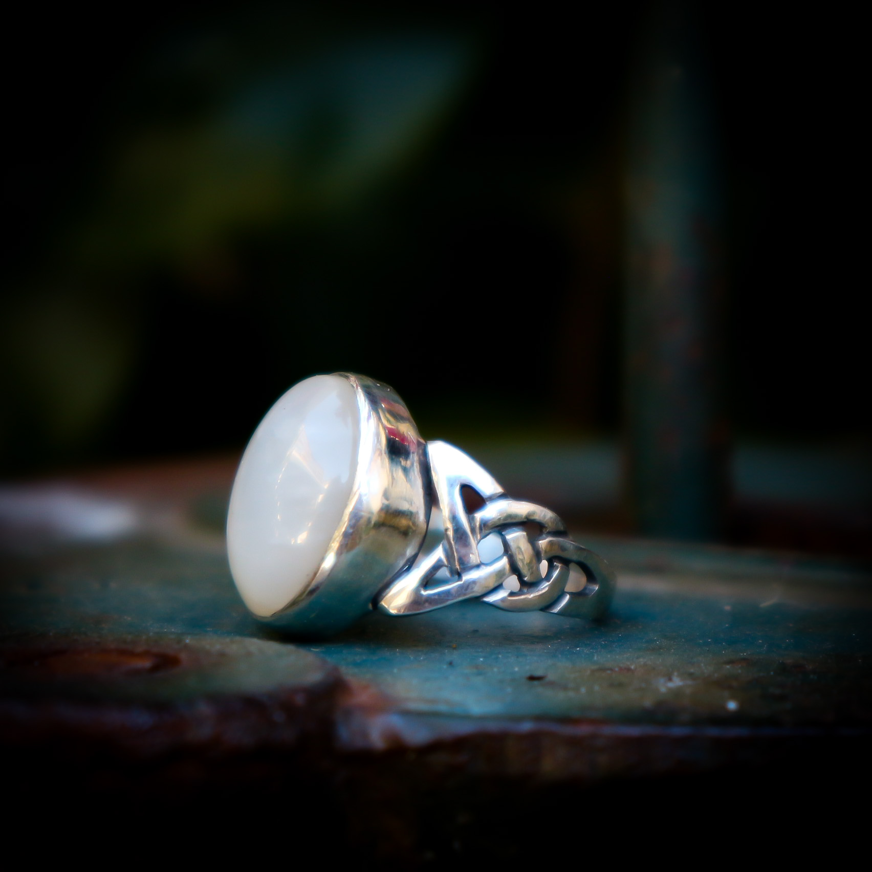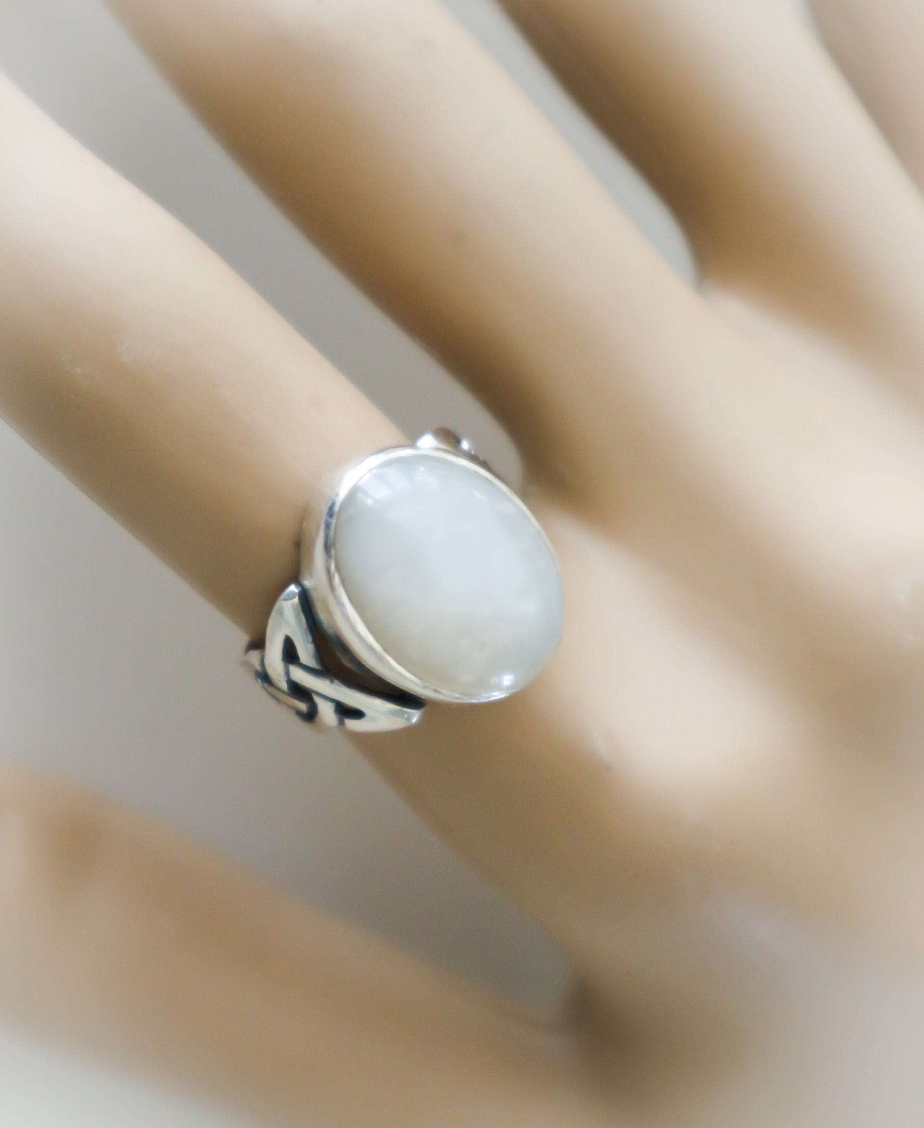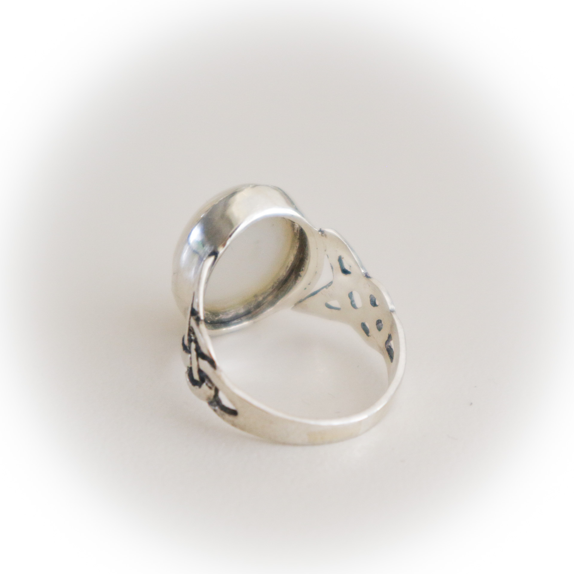 Een elegante zilveren ring met een keltisch motief .