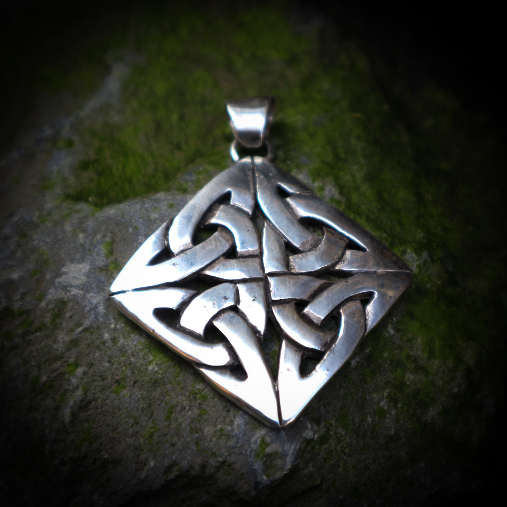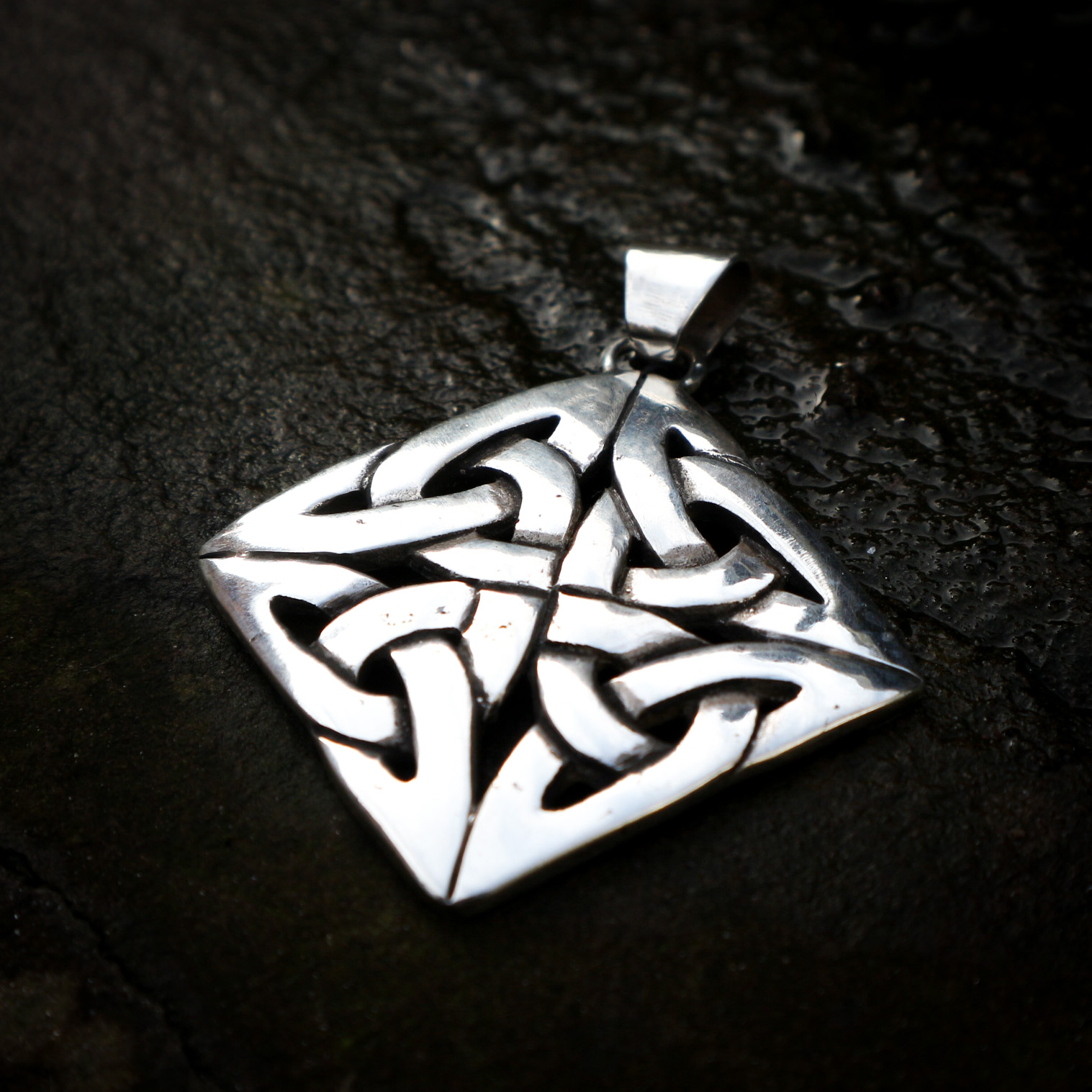 Dit is een mooie, solide Keltische hanger in een vierkante vorm .