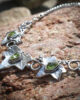 Op ieder blad een onregelmatig geslepen peridot steen in een prachtige groene tint, die de levendigheid van de natuur perfect weerspiegelen. Om iedere steen een sierrandje, wat de halsketting een sprookjesachtig uiterlijk geeft .