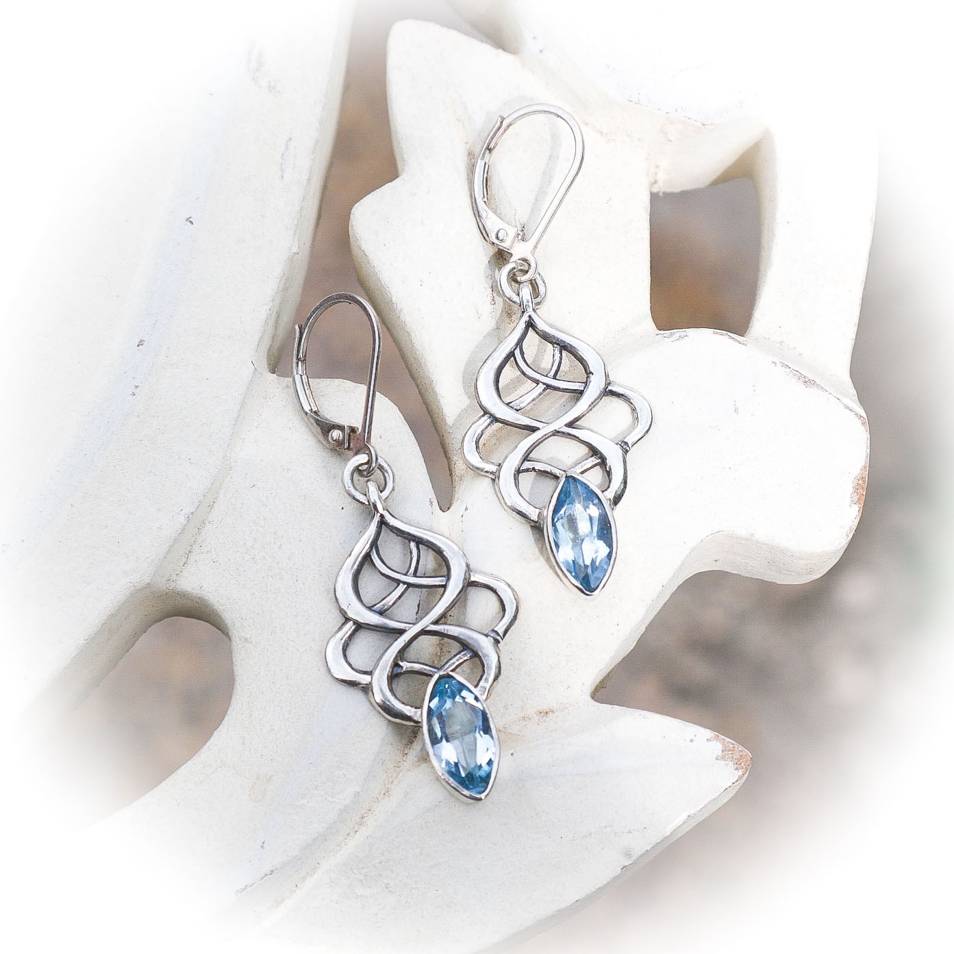 Sierlijk paar oorbellen met blauwtopaas stenen