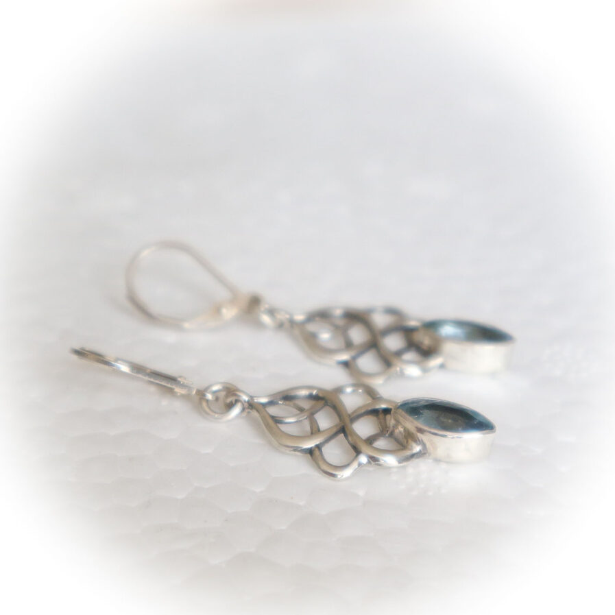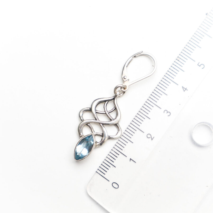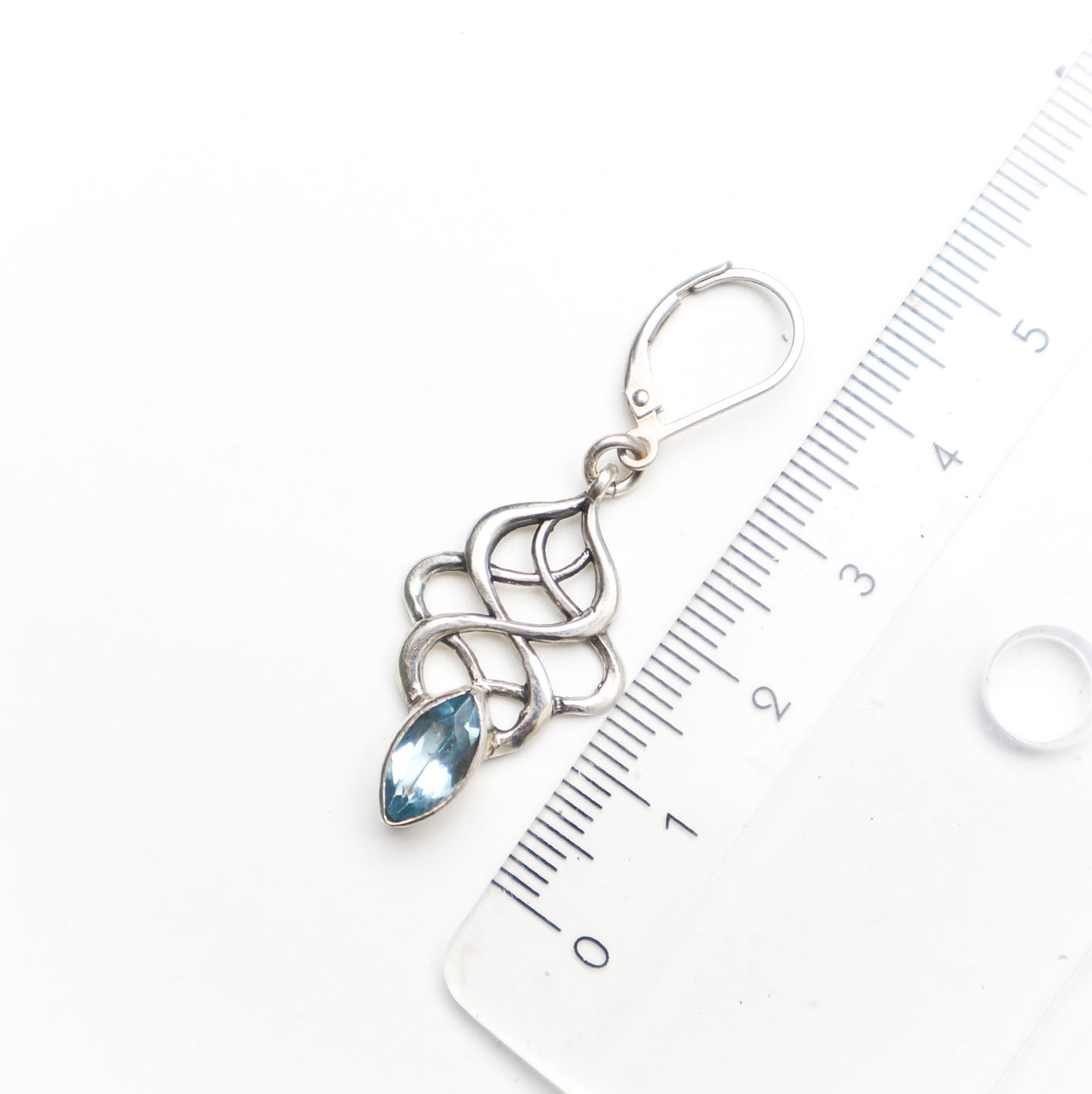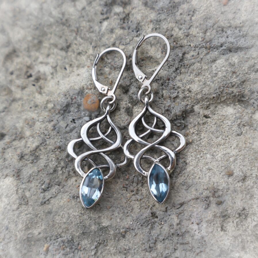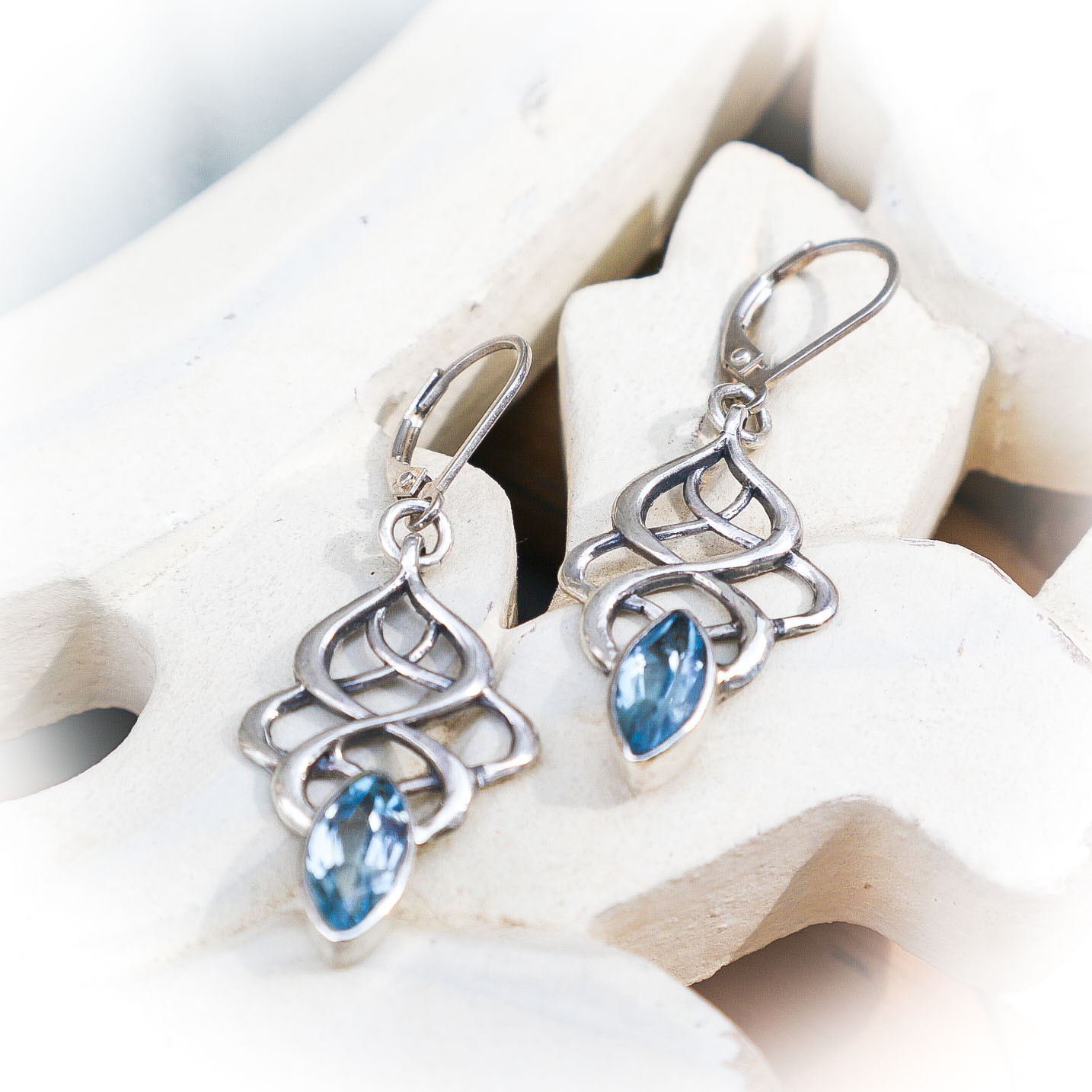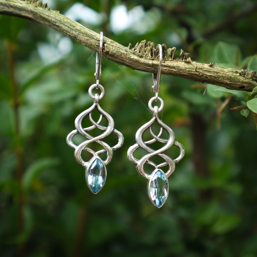 De natuurlijke blauw topaas stenen vormen het stralende middelpunt, met hun betoverende diepte en levendige kleur.