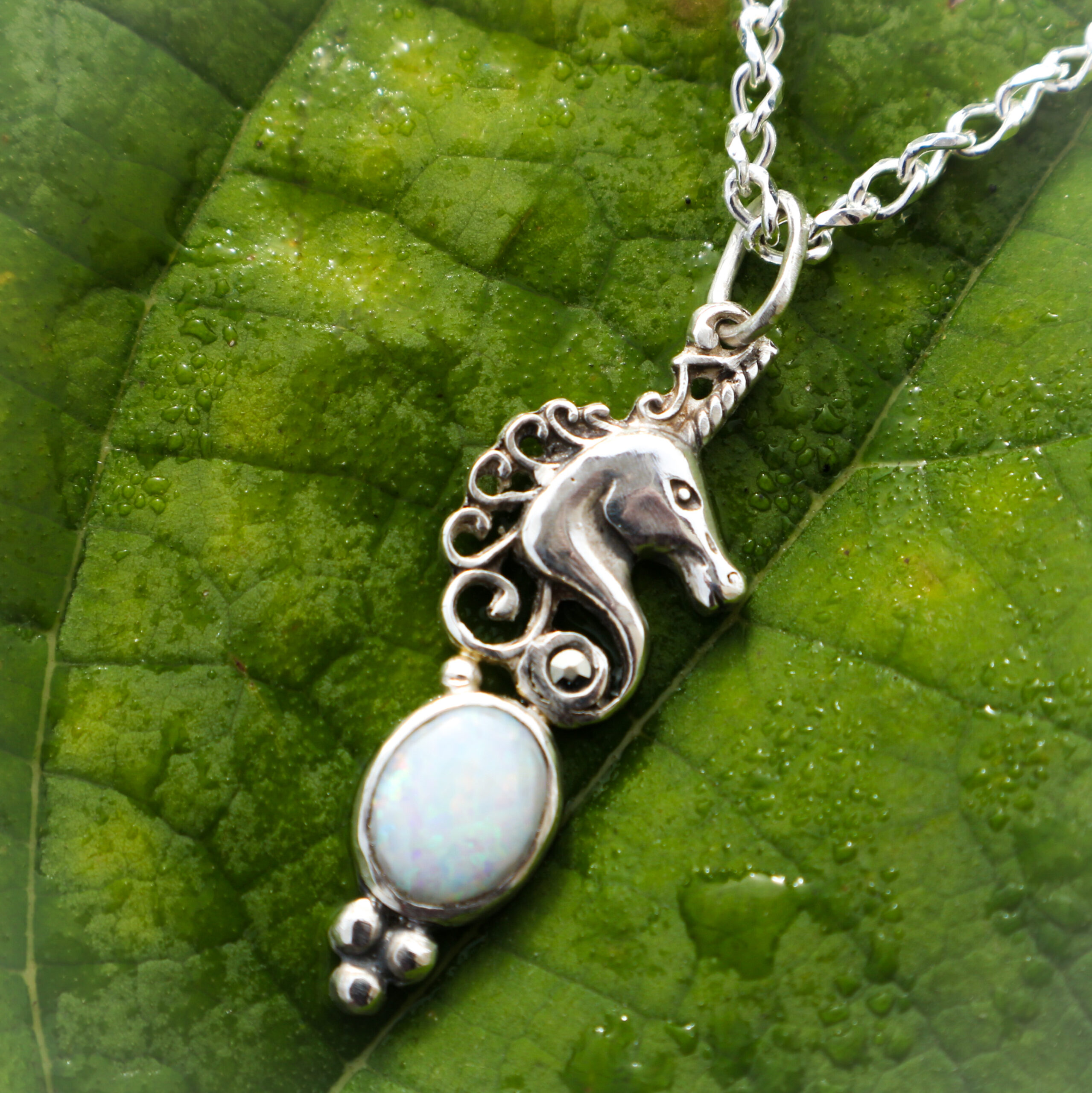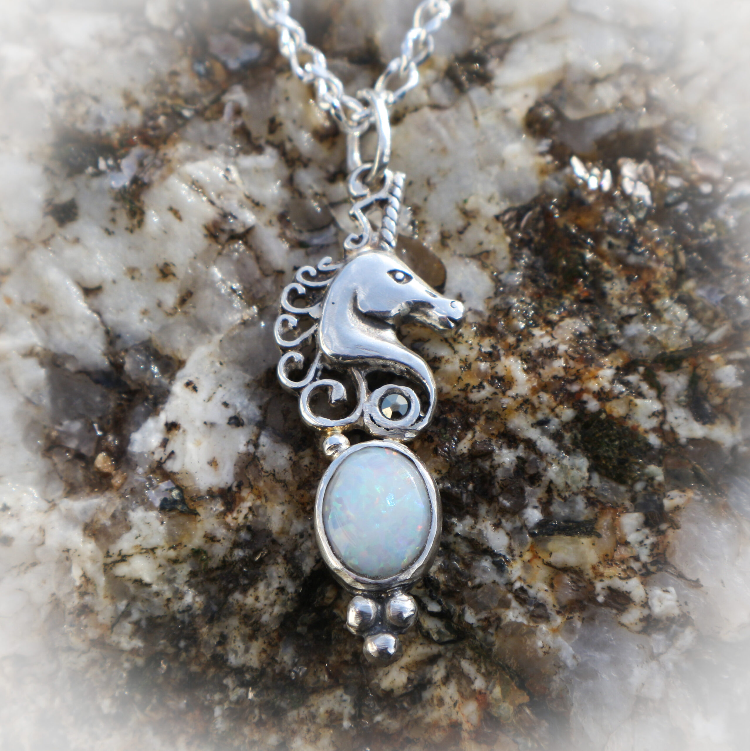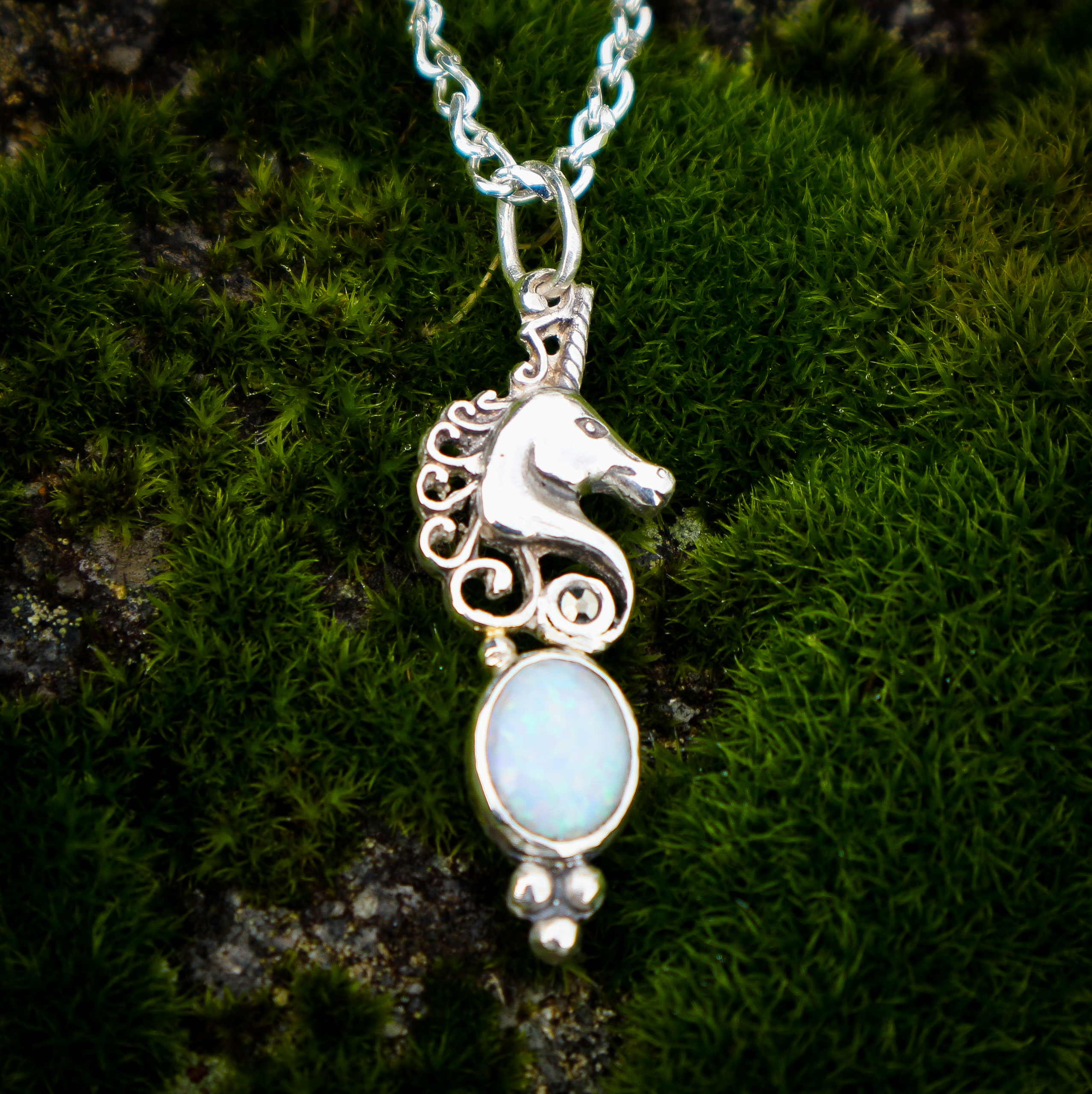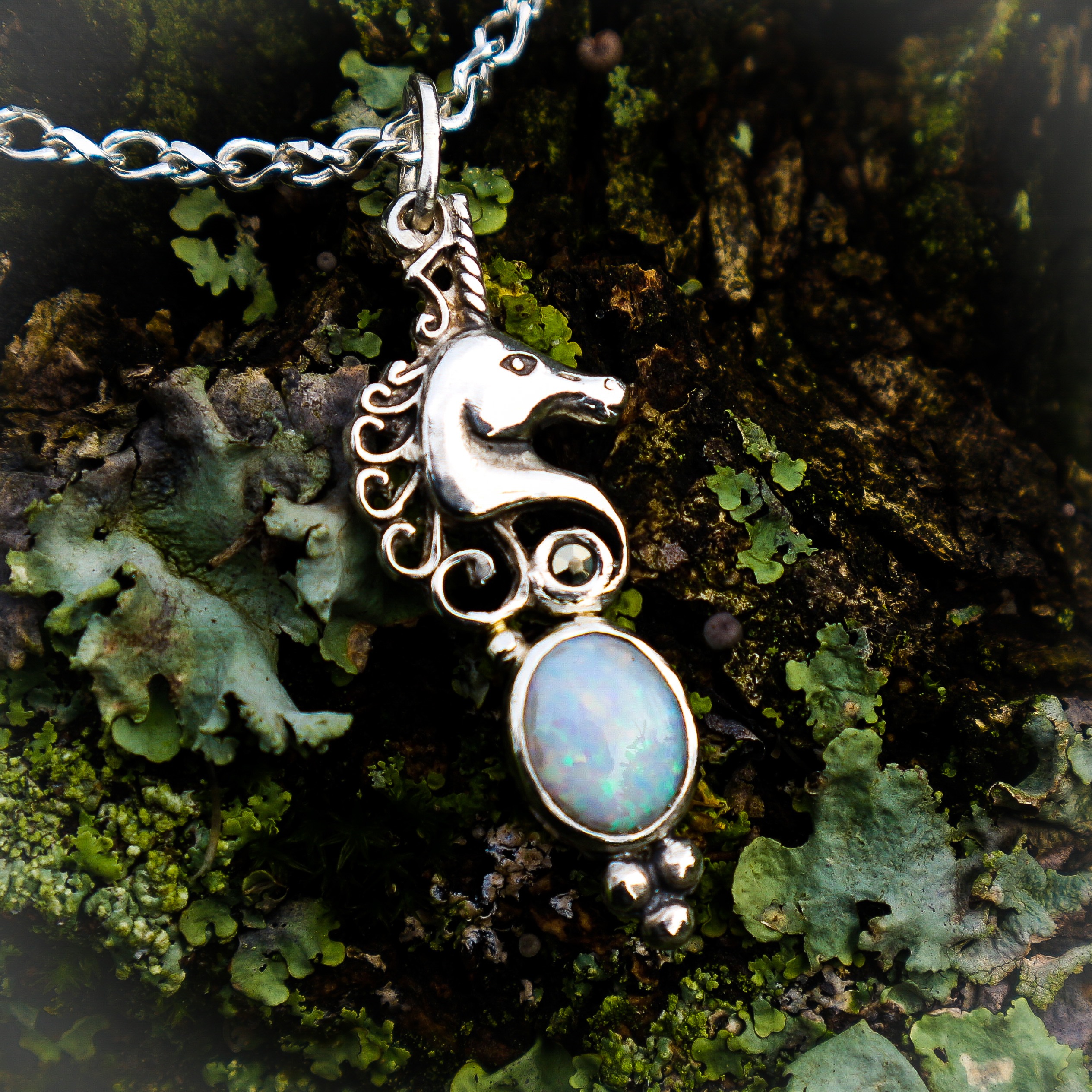 Sterling zilveren eenhoorn hanger met witte opaal – inclusief ketting