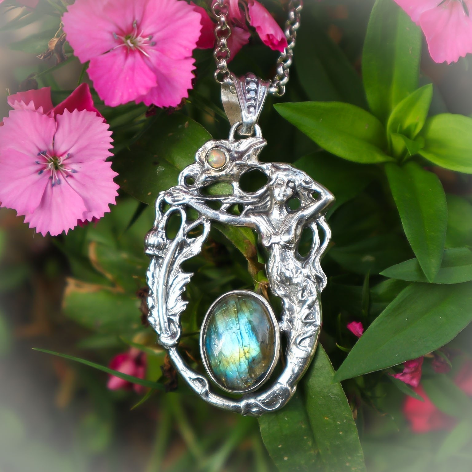 Een handgemaakte, betoverende hanger in sterling zilver “Bloemenfee”