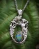 Bovenin de hanger een kleine opaal (3 mm rond) die speels de kleuren van de regenboog weerspiegelt en een extra vleugje betovering toevoegt.