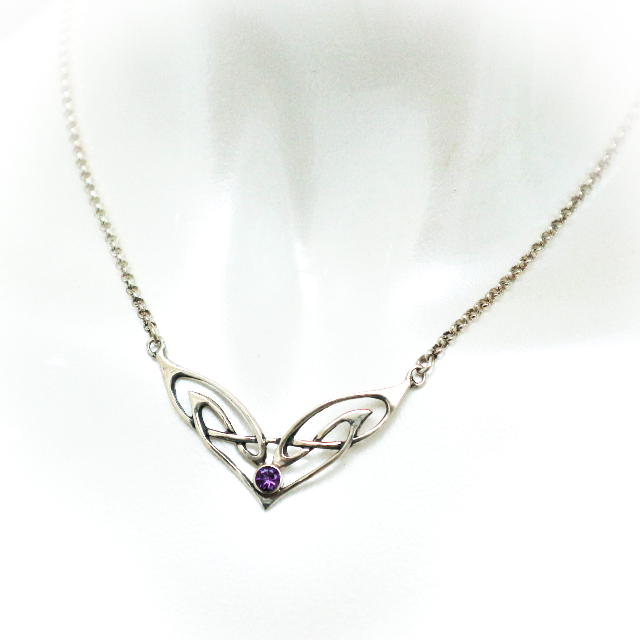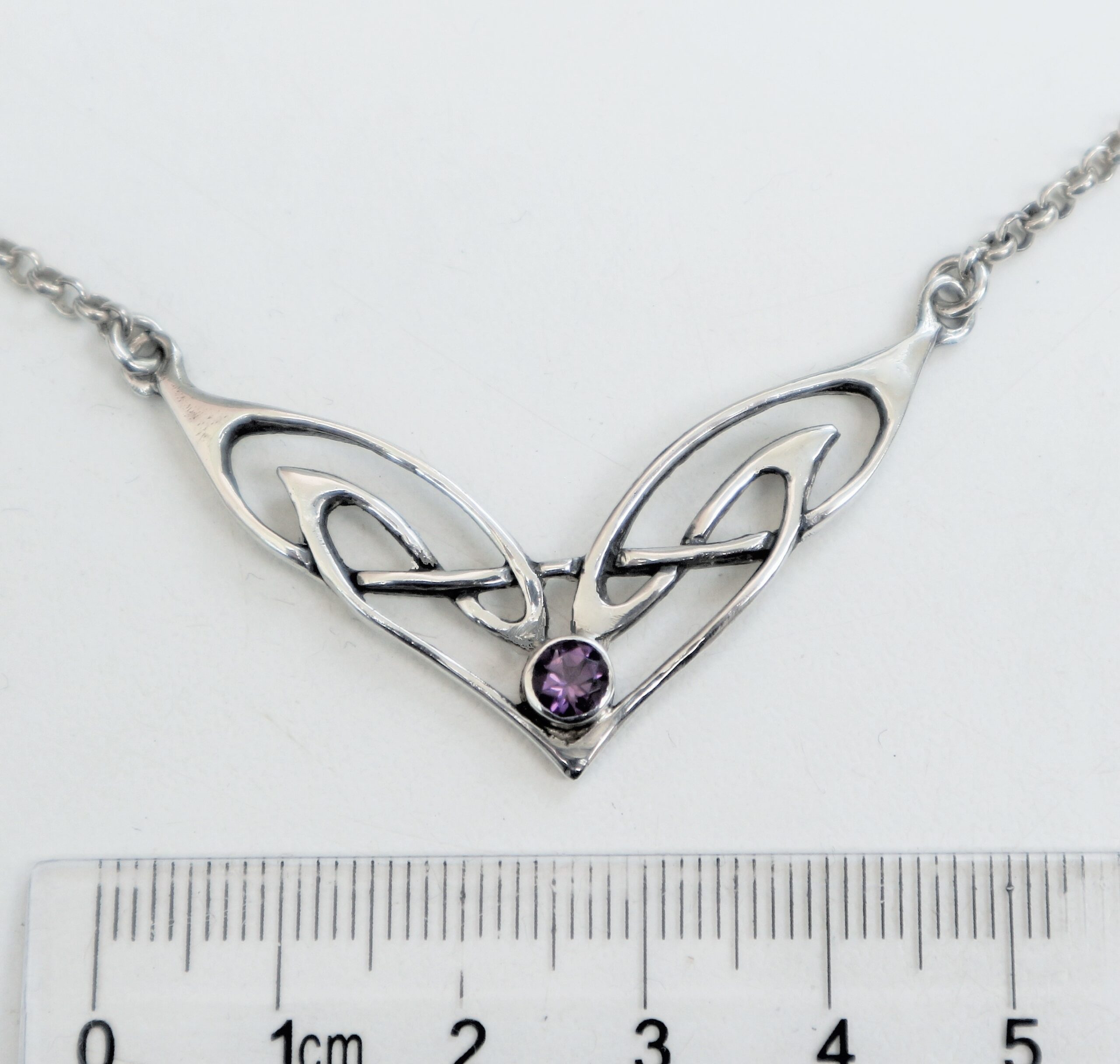 Een keltische knoop met daarin een prachtige, gefacetteerde amethyst ( 5 mm rond )